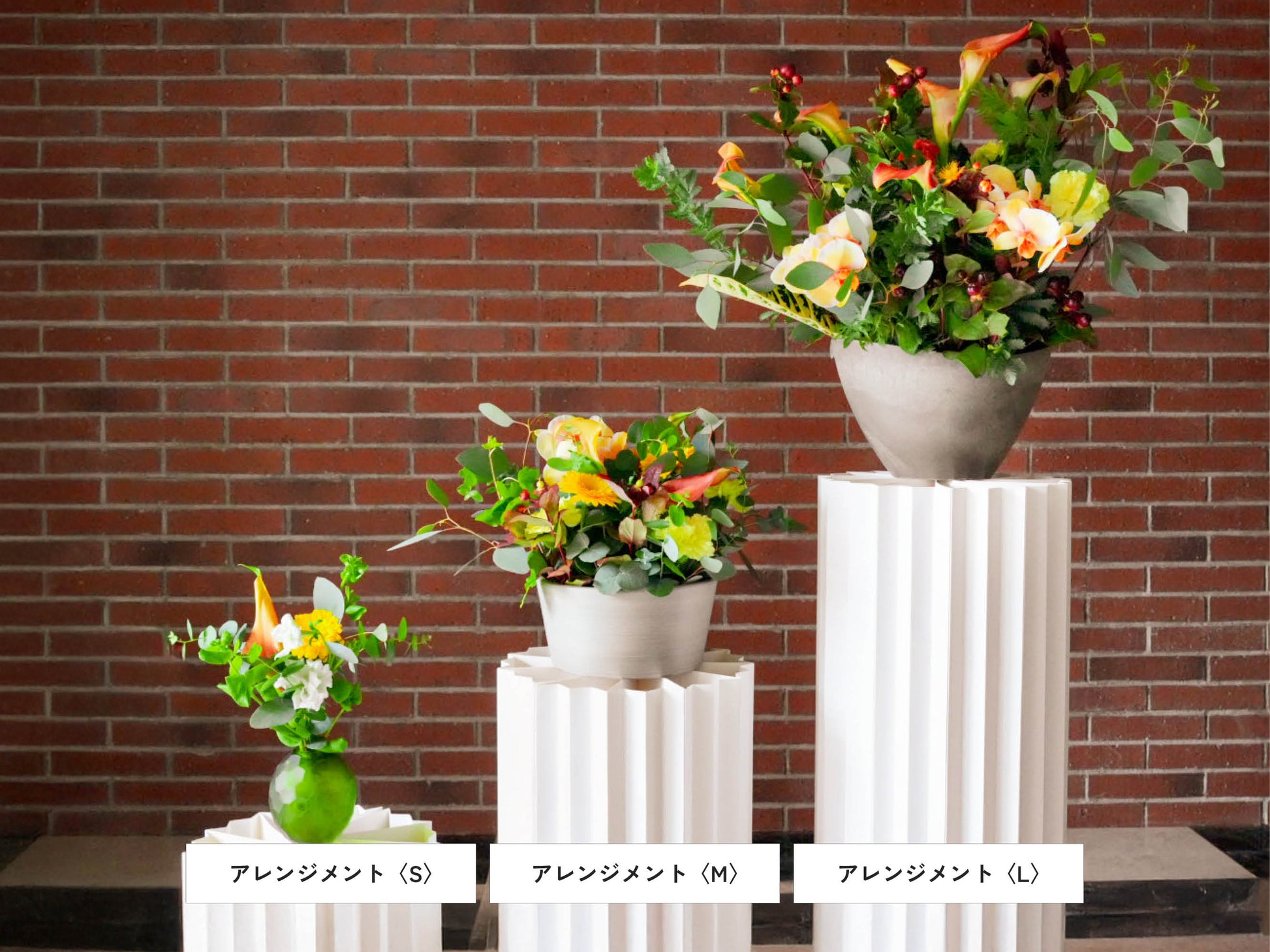 置いて飾れる、花瓶の要らない「アレンジメント」です。